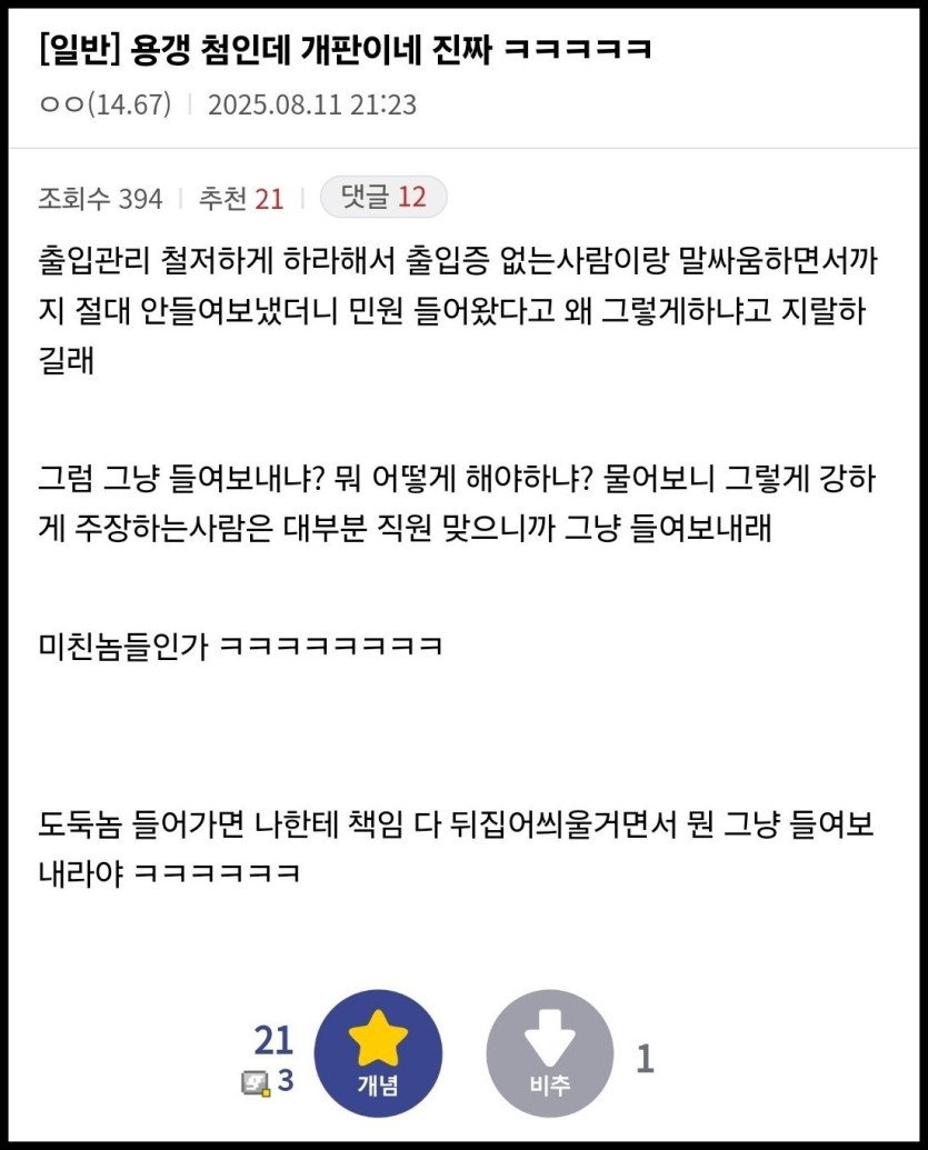 헐 대박... 오늘 첫 출근했는데 경비실이 이렇게 난장판일 줄은 몰랐음 너무 시끄럽고 사람도 많고